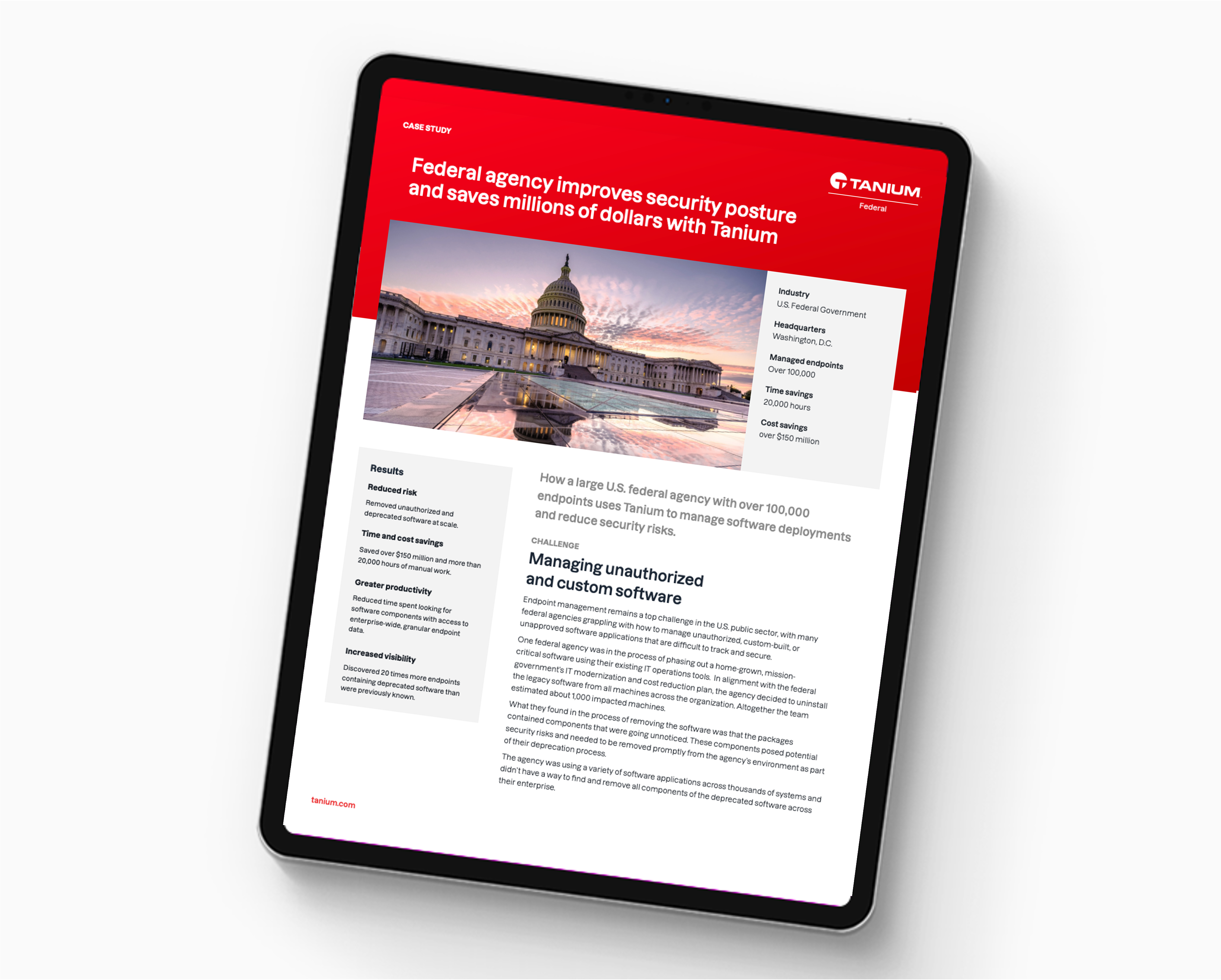 See what happened when a large U.S. federal agency with over 100,000 endpoints used Tanium to manage software deployments and reduce security risks.